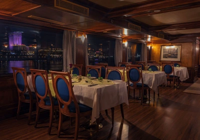 Sus suites Stateroom (21 m²) y Royal (28 m²) cuentan con amplios ventanales que te permitirán contemplar el legendario río Nilo en todo su esplendor, mientras te relajas en un entorno de máximo confort. La gastronomía a bordo destaca por su exquisitez y variedad, y el ambiente de calma y sofisticación te acompañará en cada rincón.